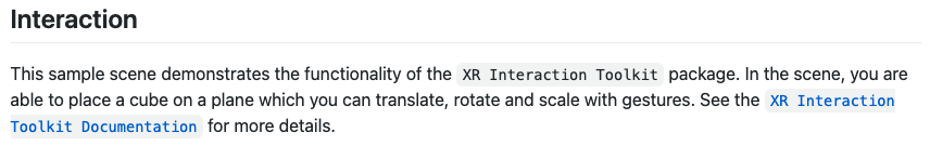 아래는 Interaction 설명부분과 AR Foundation Github 링크다.