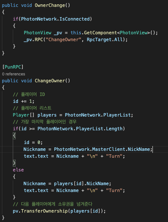 한 사람의 턴이 끝나면 소유권이 다음사람에게 넘어가는 방식으로 변경했다.